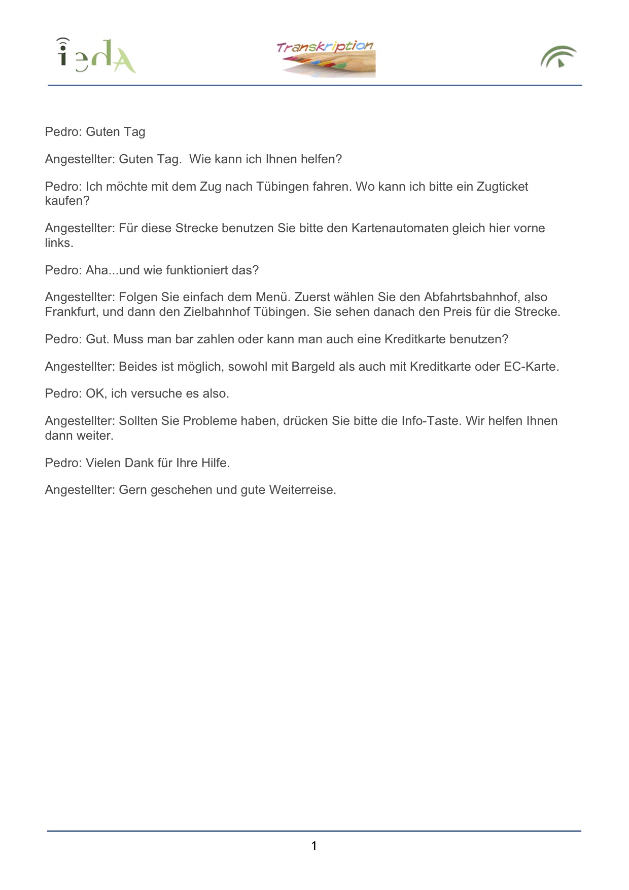 Pedro ist am Bahnhof angekommen und möchte nach Tübingen fahren.