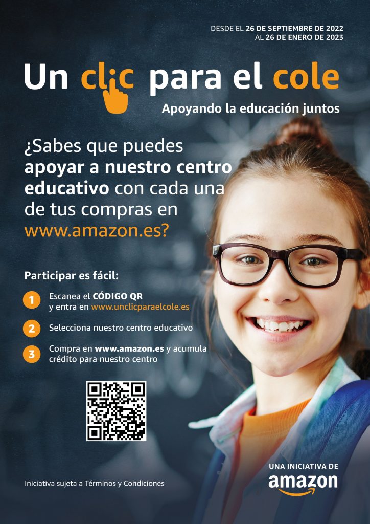Regístrate en Un Clic para el Cole y Amazon donará un porcentaje de tus compras elegibles realizadas en Amazon.es a nuestra escuela en forma de crédito virtual que se puede usar para útiles escolares.