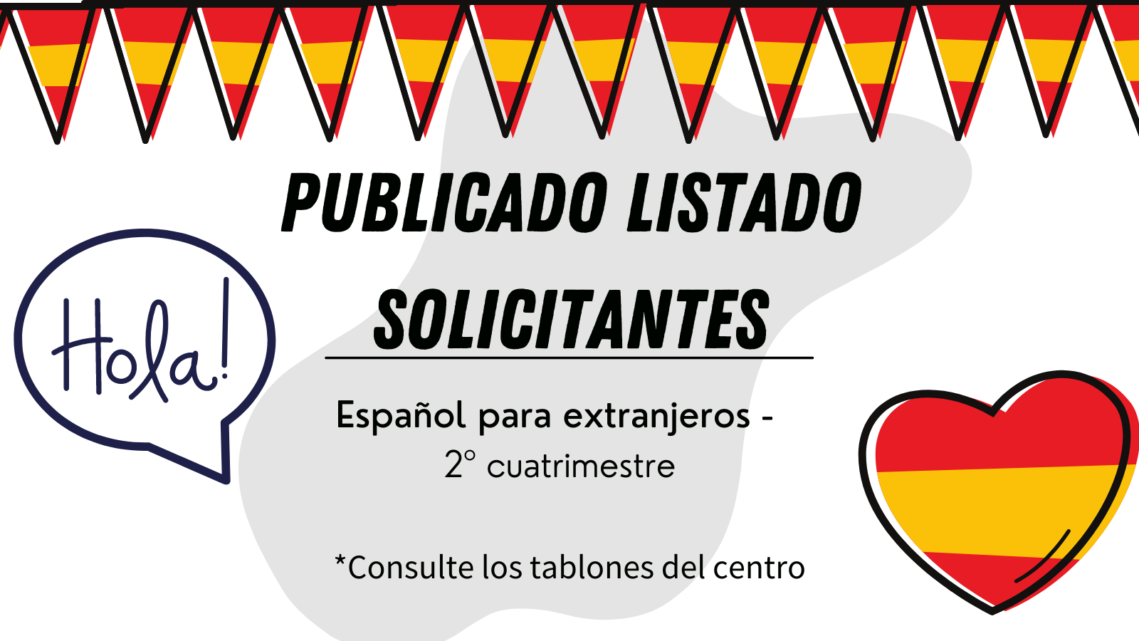 PUBLICADO LISTADO DE SOLICITANTES DE ESPAÑOL PARA EXTRANJEROS por EOIMarbella | Ene 26, 2022 | NOVEDADES Ya puedes consultar el listado de solicitantes de español para extranjeros del 2º cuatrimestre en los tablones del centro. Recuerda que el día 3 febrero se publicará el listado de admitidos/as.