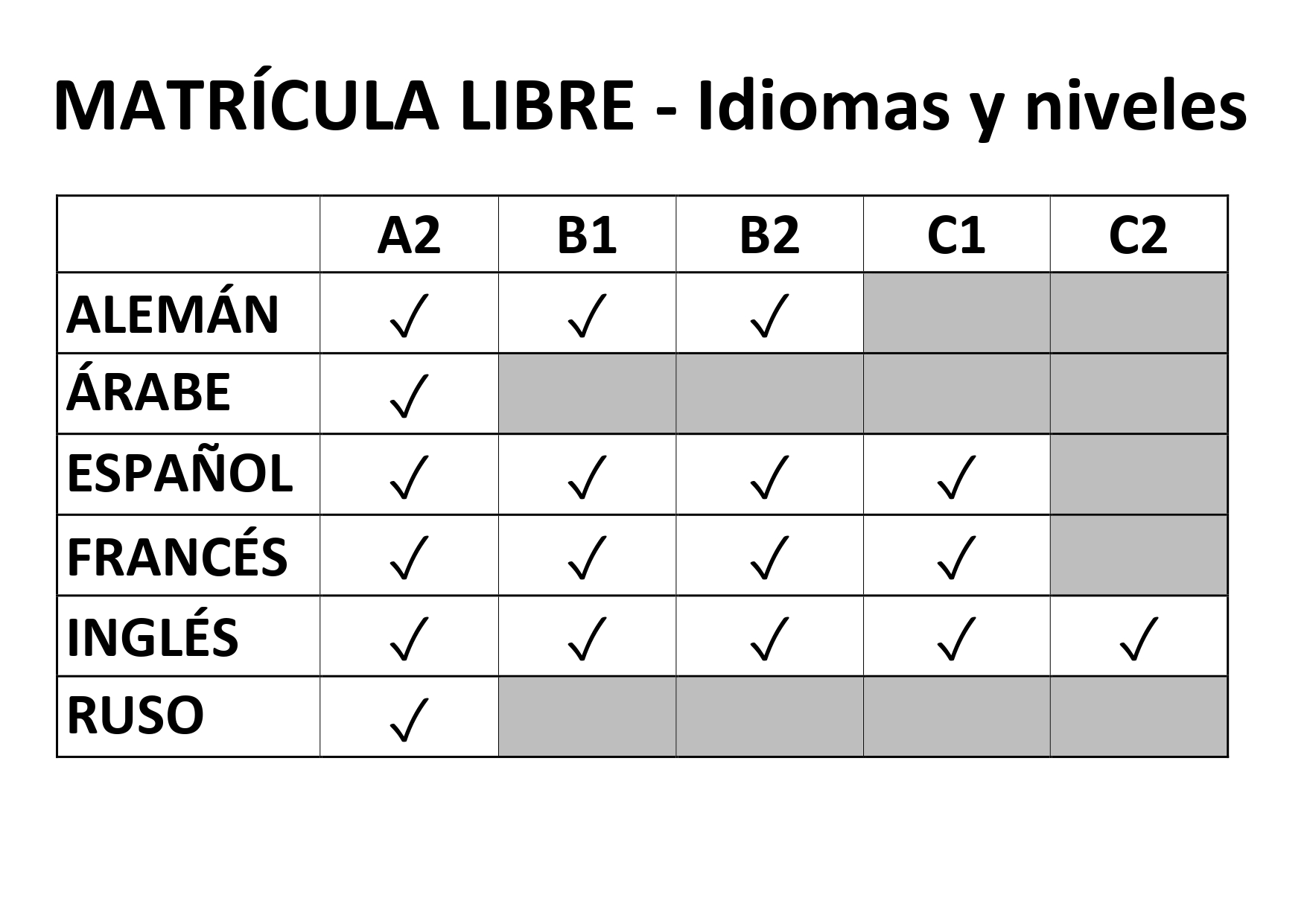 - Nivel Básico (Nivel A2 del MCER): alumnado de alemán, árabe, español, francés, inglés y ruso.